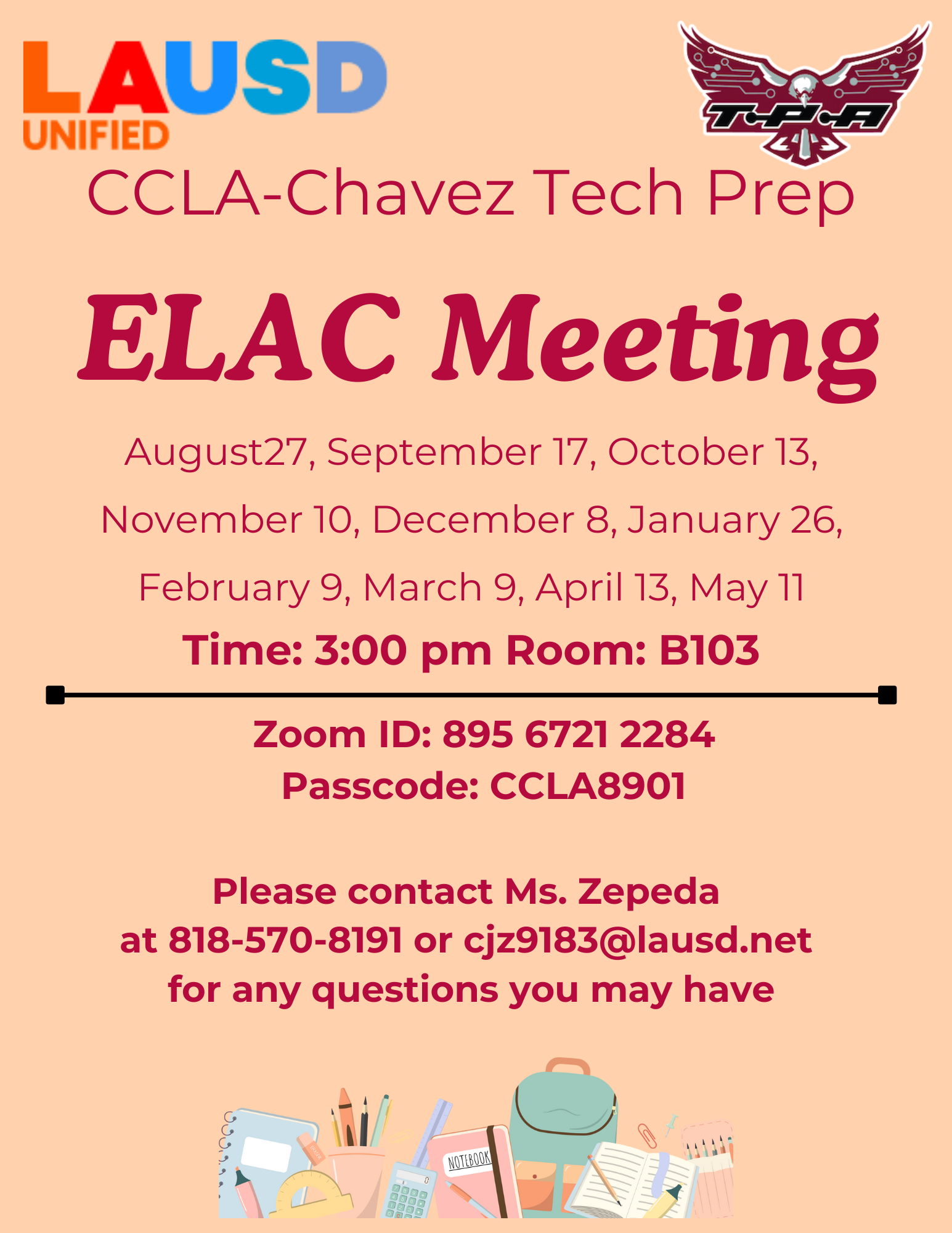 Chavez TPA - ELAC Meetings for the 2025-2026 School Year / Juntas de ELAC para el año escolar 2025-2026